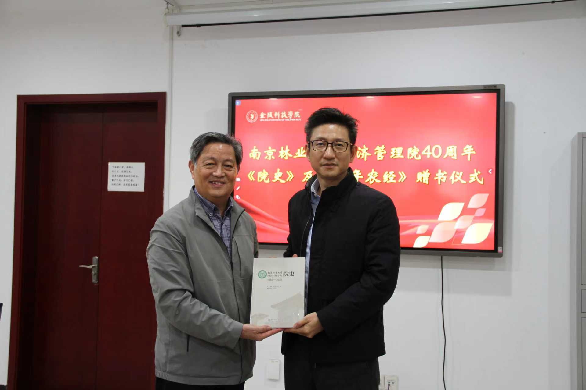 指导会前,聂影将南京林业大学经济管理院40周年《院史》及《百年农经》等图书赠予学院。