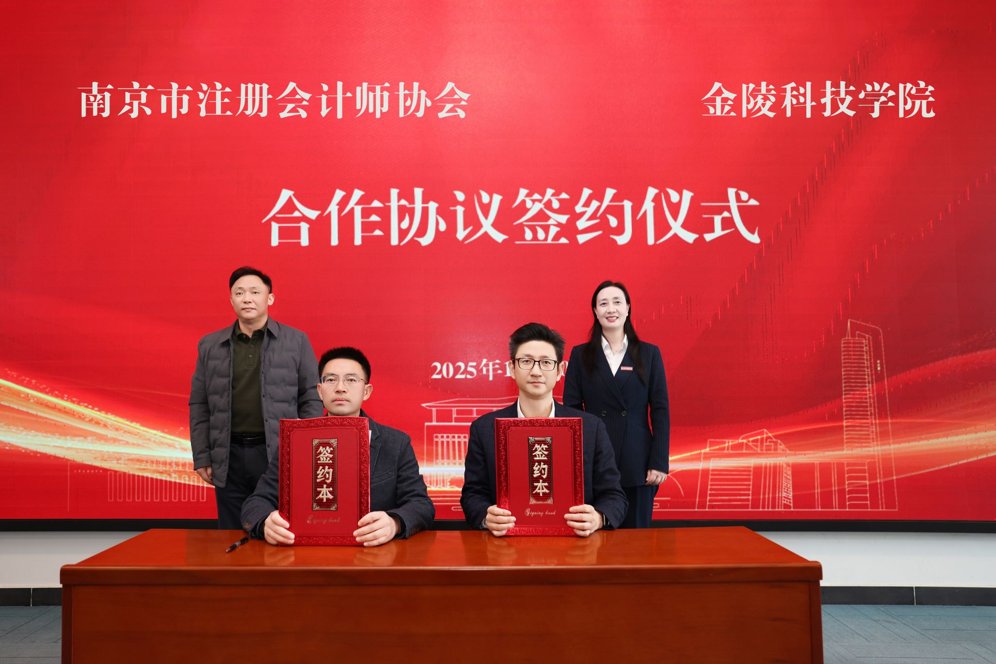 11月20日下午,我校与南京市注册会计师协会合作签约与揭牌仪式在3号科技楼110会议室举行。校会双方共同开展产教融合、协同育人,旨在培养适应新时代发展的高素质会计人才。