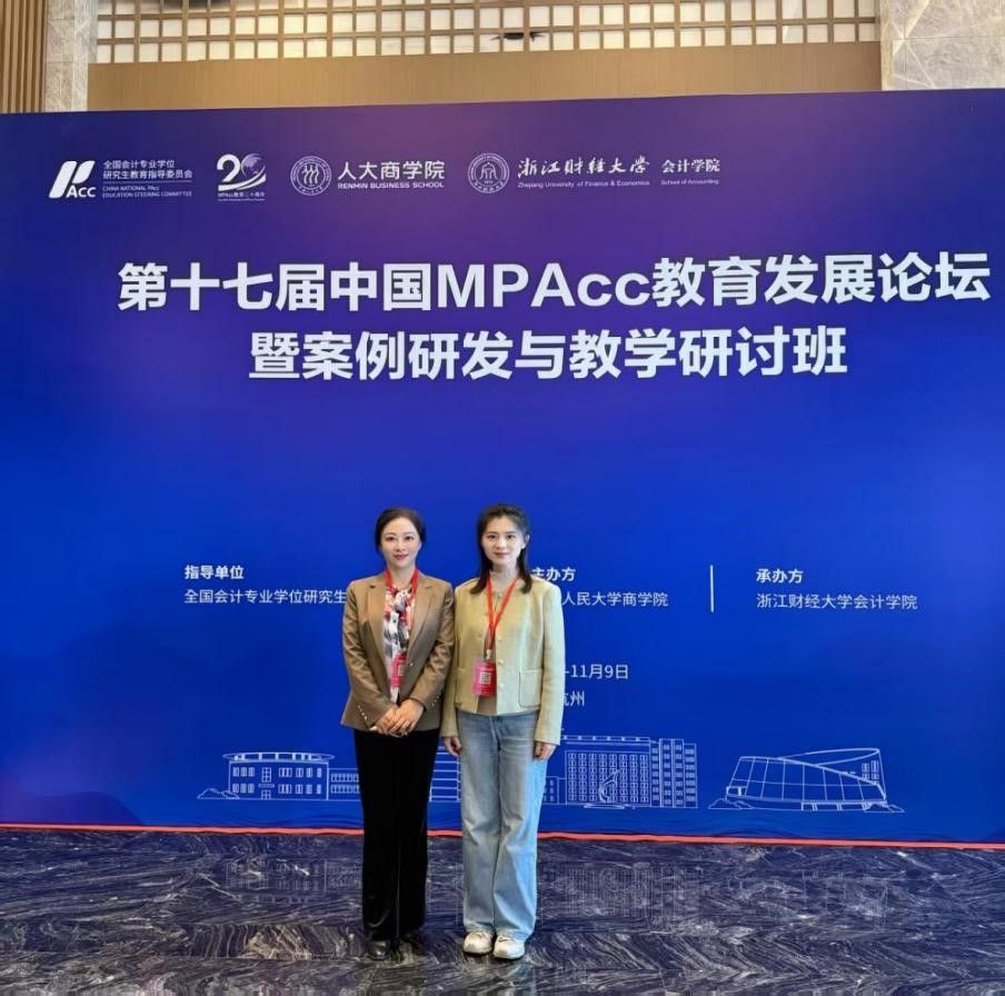 为深入贯彻落实数智时代会计专业学位研究生教育高质量发展要求,推动案例教学与数智化融合创新,11月8日至9日,由全国会计专业学位研究生教育指导委员会指导,中国人民大学商学院主办、浙江财经大学会计学院承办的第十七届中国MPAcc教育发展论坛暨案例研发与教学研讨班成功举办,吸引了来自全国近150所MPAcc培养单位的230余位专家学者参会。为更好地推动我院会计专业硕士点建设,我院会计专硕中心常务副主任杨昀教授和会计系副主任陈欢副教授参加本次研讨班。