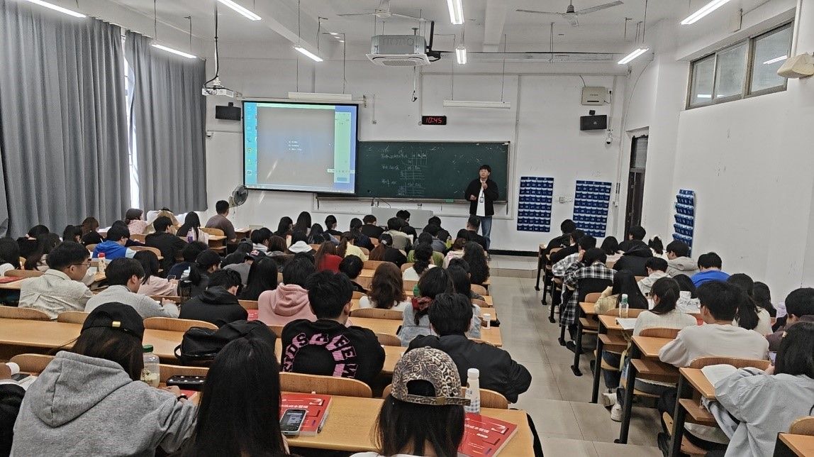 2026年4月10日上午,江苏顺丰速运有限公司运营服务支持兼商学院职业生涯规划导师王思明应邀走进金陵科技学院商学院物流系,为2023级物流管理专业全体学生召开实习动员会。首先观看了25届毕业生已经担任店长的唐一峰和郭一诺两位学长录制的视频,两位学长分享了实习及职场经验。然后王思明简述顺丰发展历程,根据自身经验和学弟分享工作要点,请同学们积极投递简历,到江东分公司勤工助学,提升自身实践能力。接下来由优才学长耿溶雪分享成功入职的经验,重点是具有吃苦耐劳和勇于奉献的工匠精神,并勉励大家报名万原营业点;再由优秀大学生学长宋兴华,向大家展示了顺丰的人才培养机制。老师也鼓励学生积极报名。本次动员会有效激发了学生的实践热情,为深化校企协同育人、推动应用型人才培养奠定了坚实基础。