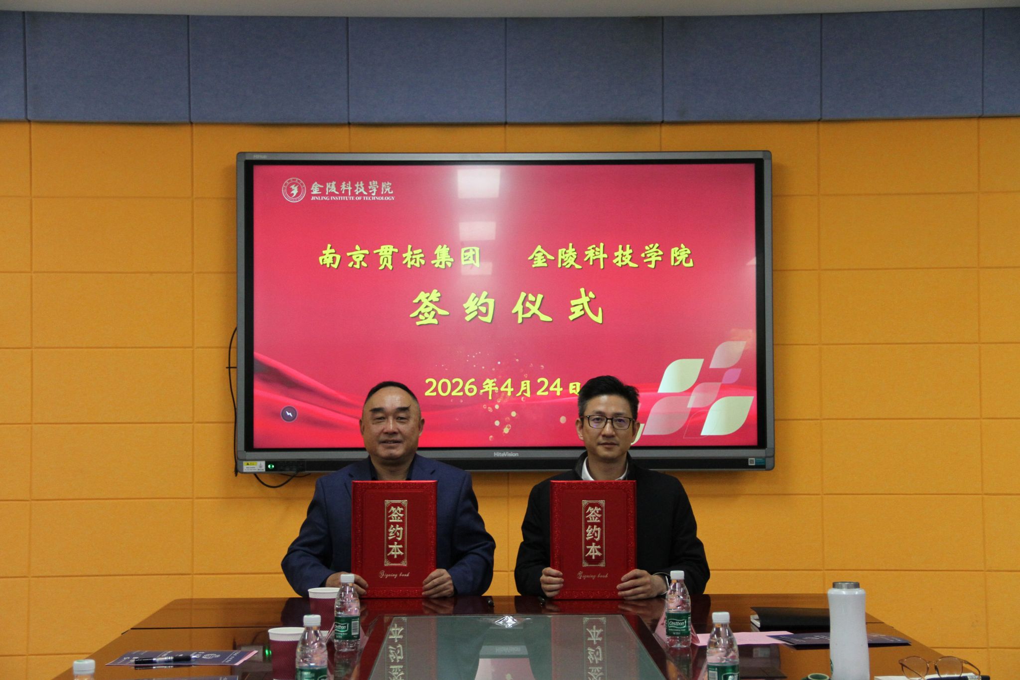 随后,刘磊院长与陈健董事长代表双方签订了《金陵科技学院—南京贯标集团合作框架协议》,徐立岗书记为陈健董事长颁发“企业班主任”聘任证书,接着,双方代表先后为“金陵科技学院校外实习基地”“南京贯标集团人才培养与科研合作基地”揭牌。此次签约授牌活动,标志着学校与南京贯标集团的合作正式落地,双方将以此次合作为起点,凝聚合力、深耕细作,在人才培养、技术创新、社会服务等方面实现协同发展,书写产教融合、校企合作新篇章。