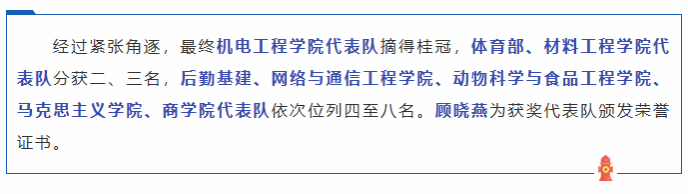 11月12日下午,校工会和保卫处联合在江宁校区南区体育场举办了第四届“安康杯”教职工消防趣味运动会,我院派出8名教职工运动员参加比赛。经过大家的团结合作,我院时隔两年后再次进入校前八名。