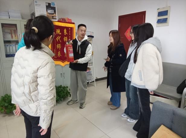 本月对所有办公室值班学生进行了消防器材使用培训。让值班学生能够掌握灭火器材的正确使用方法,一旦发生意外,能够正确应急处置,提升消防安全技能。