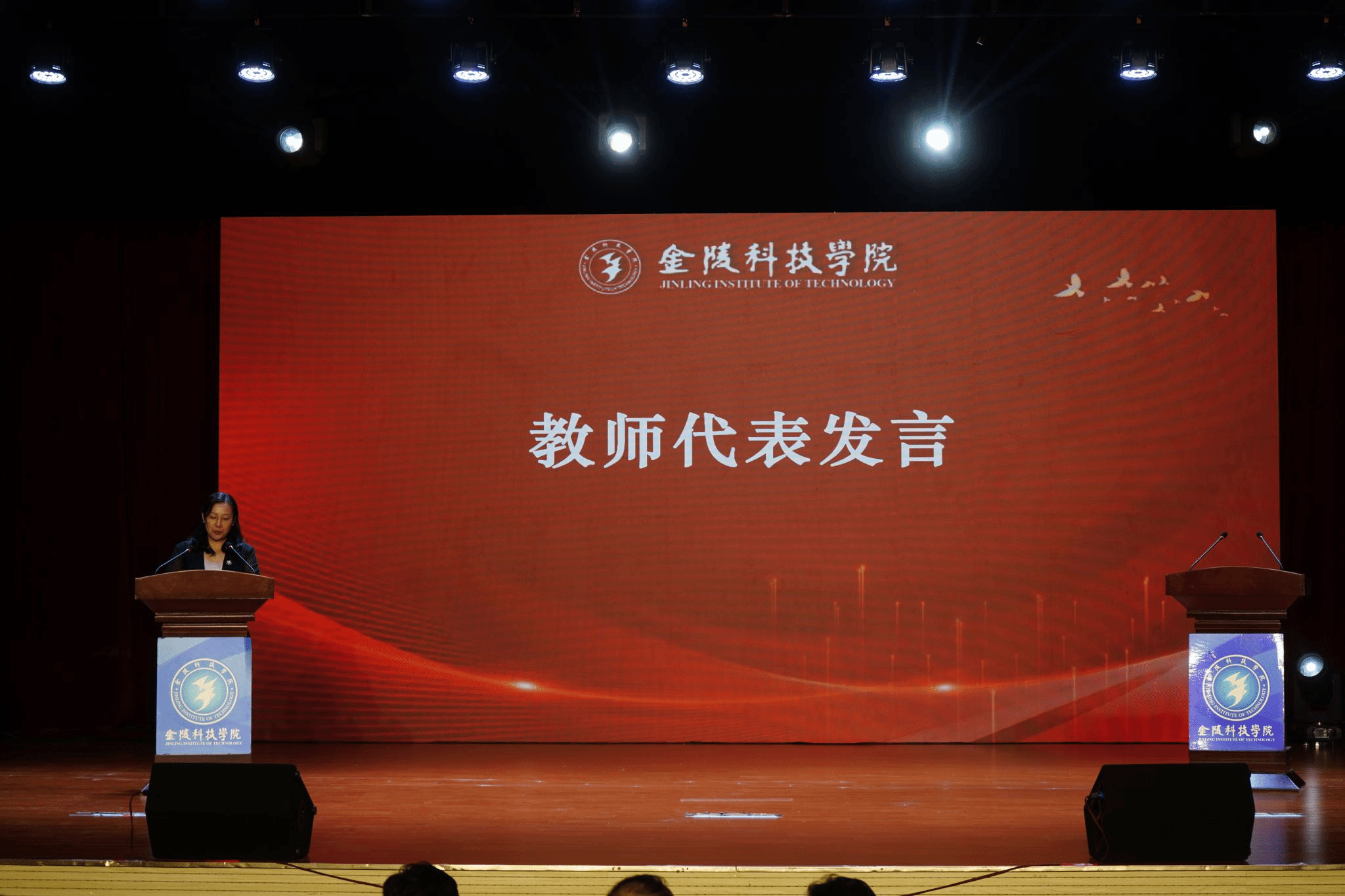 教师代表王翯华以“自由与自律”为主题,结合大学生活的特点,引发了同学们的深思。她鼓励大家不断丰富体验、善用碎片化时间,在大学四年里实现价值、学会交往、获得成长