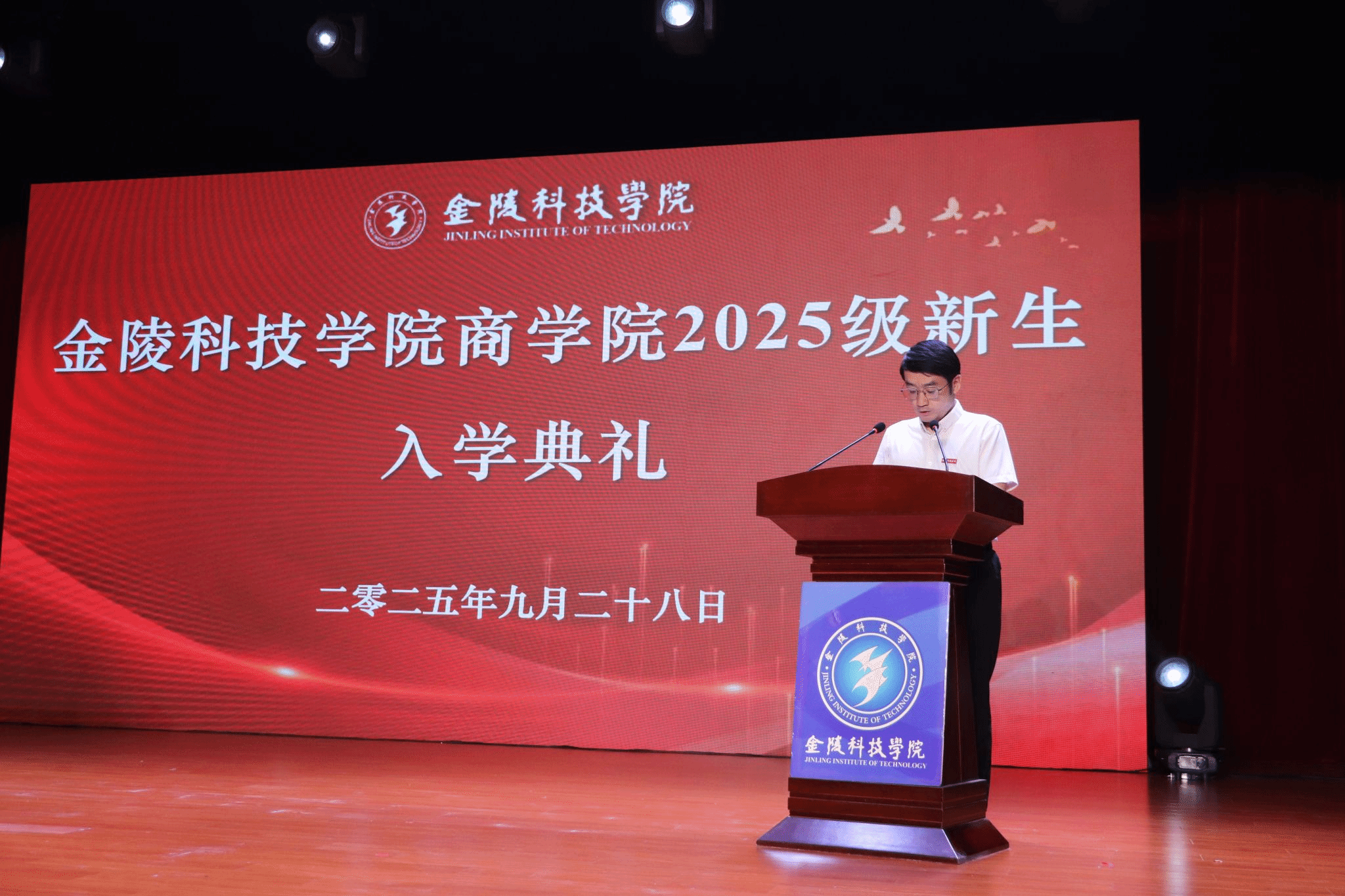 金秋九月,硕果飘香。9月28日下午13:30,金陵科技学院商学院2025级新生入学典礼在我校大学生活动中心千人剧场举行,商学院党委书记徐立岗、商学院院长刘磊、商学院党委副书记孙亮、商学院副院长陶应虎、副院长黄阳、各系部主任、教师代表、全体辅导员、校友代表、在校生代表、2025级研究生及2025级统本新生共同出席典礼。本次开学典礼由孙亮副书记主持。