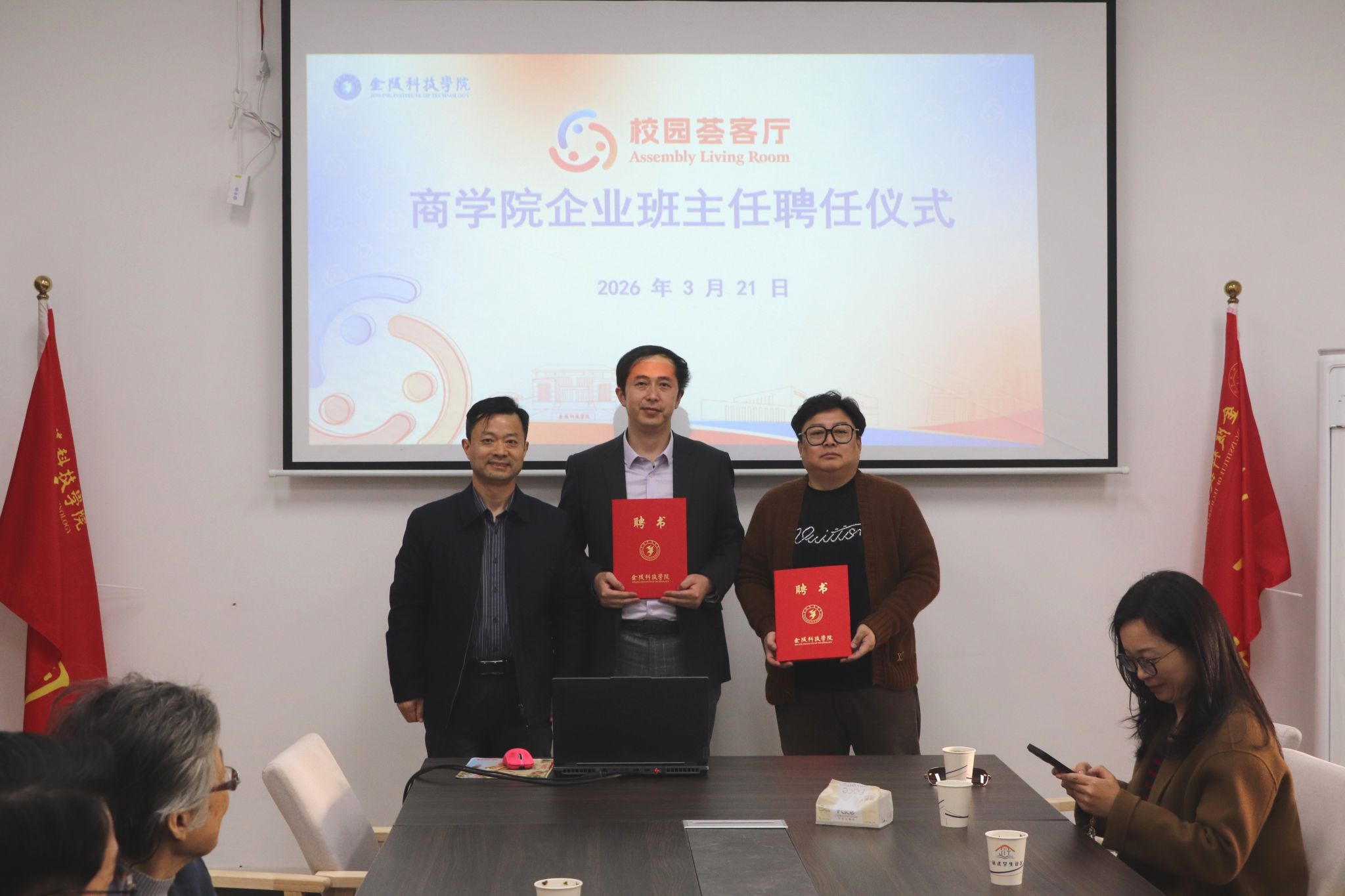 3月21日下午,商学院在南02“一站式”学生社区举办“校园荟客厅”系列活动暨企业班主任聘任仪式。校关工委常务副主任、原校党委副书记谢培苏,商学院党委书记徐立岗、副书记孙亮,相关师生代表及校友共同参与。