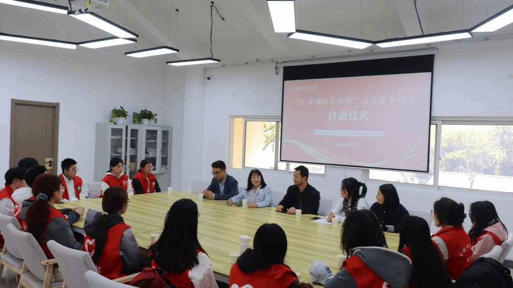 4月1日下午,金陵科技学院商学院与江苏恒爱法律援助与研究中心合作共建的“民事调解员助理”志愿服务项目启动仪式,在南区01栋“一站式”学生社区顺利举行。江苏恒爱法律援助与研究中心理事长、商学院原党委副书记叶晓辉,商学院党委书记徐立岗,党委副书记孙亮出席仪式。启动仪式由商学院学工办主任顾磊主持,同时经过前期选拔来自三个年级的24名志愿者共同见证项目启航。