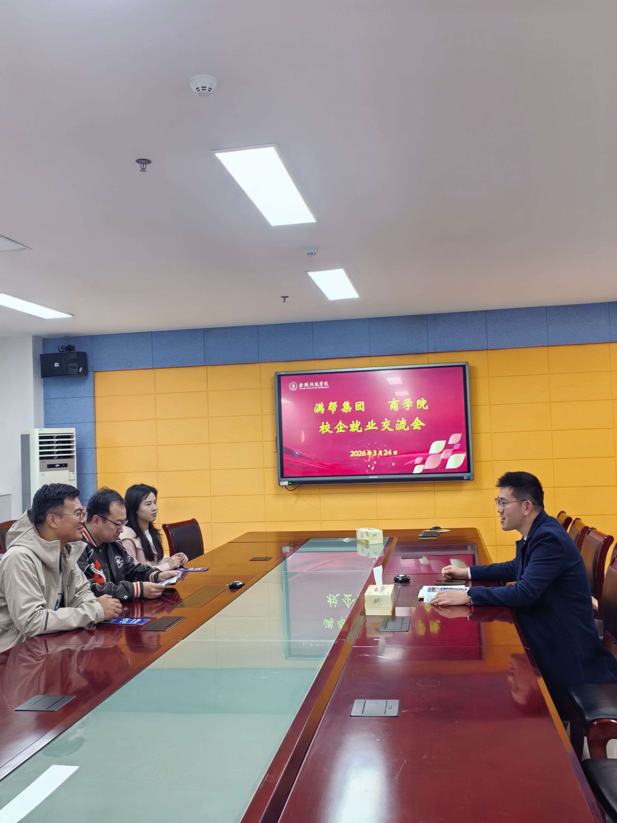 为深化校企协同育人机制,精准对接数智物流行业人才需求,拓宽学生高质量就业渠道,近日,满帮集团旗下运满满校招组、业务组核心团队应邀进校,与商学院学工办郑老师围绕校企合作共建、就业资源对接、岗位开发拓新等核心议题开展深度座谈交流。双方立足商科专业特色与物流行业发展趋势,共谋人才培养与就业合作新路径。