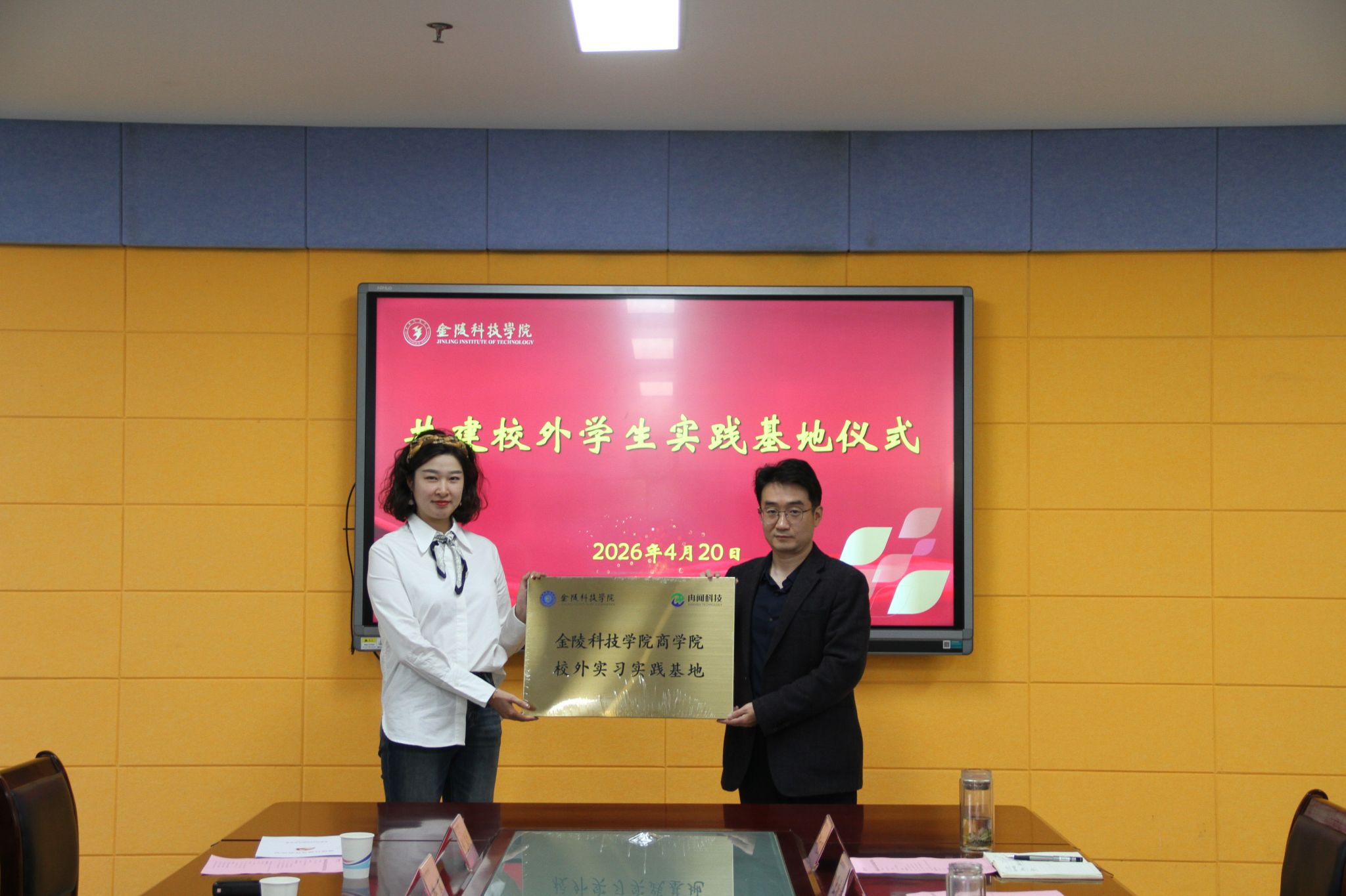 座谈交流结束后,双方共同举行校外学生就业实践基地揭牌暨党建共建签约仪式。陶应虎、孙亮与李晗、洪啸共同为校外学生就业实践基地揭牌;徐立岗与彭启明现场签署党建共建合作协议书。此次党建共建活动,是校地深化合作、协同育人的重要举措,既强化了基层党组织建设,又搭建了校企合作新平台。未来,双方将以共建协议为基础,持续深化交流合作,推动党建工作与人才培养、产业发展深度融合,共同书写校地协同发展新篇章。