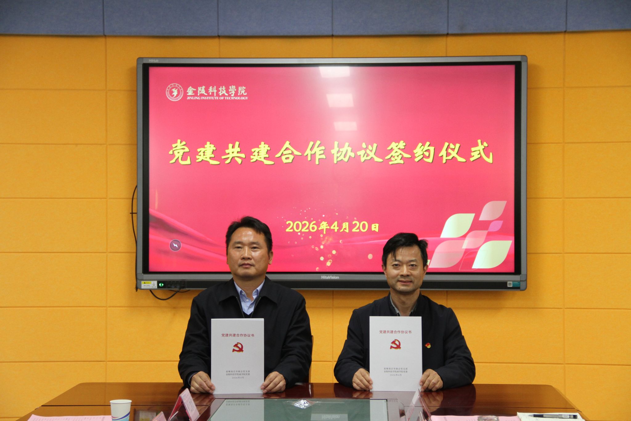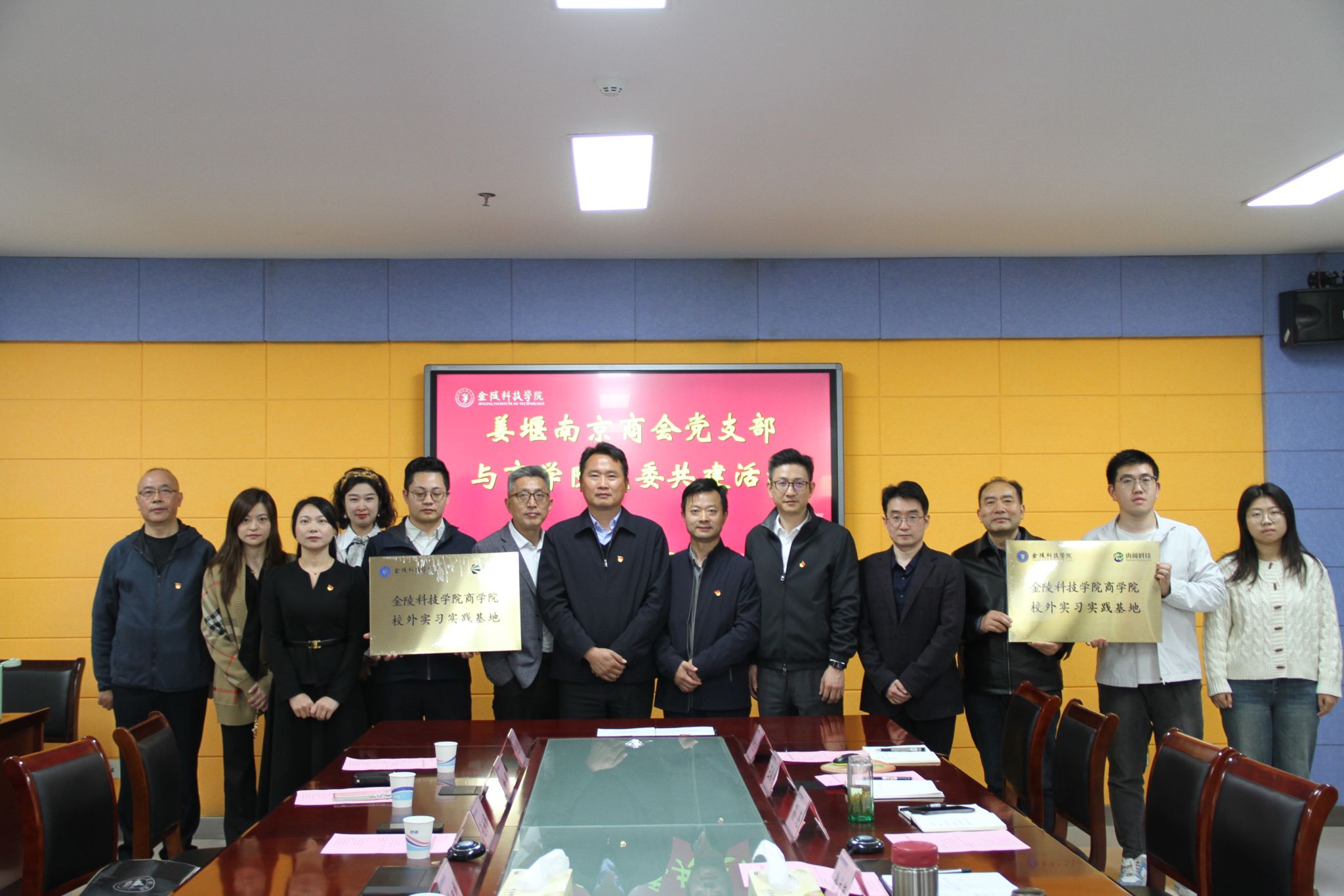 为深化校地合作、强化党建引领,推动校企资源共享与人才共育, 4 月 20 日下午,姜堰南京商会党支部与金陵科技学院商学院党委党建共建活动在江宁校区 3 号科技楼 409会议室举行。姜堰南京商会党支部书记、南京中鸿服公司董事长彭启明,商会党支部副书记孔为民、纪检委员袁子龙、秘书徐菲及农行江宁支行代表江蒨艺、冉闻科技代表李晗、锦上公司代表洪啸,商学院党委书记徐立岗、院长刘磊、党委副书记孙亮、副院长陶应虎及学院教工、学生党支部相关负责人共同参与本次活动。